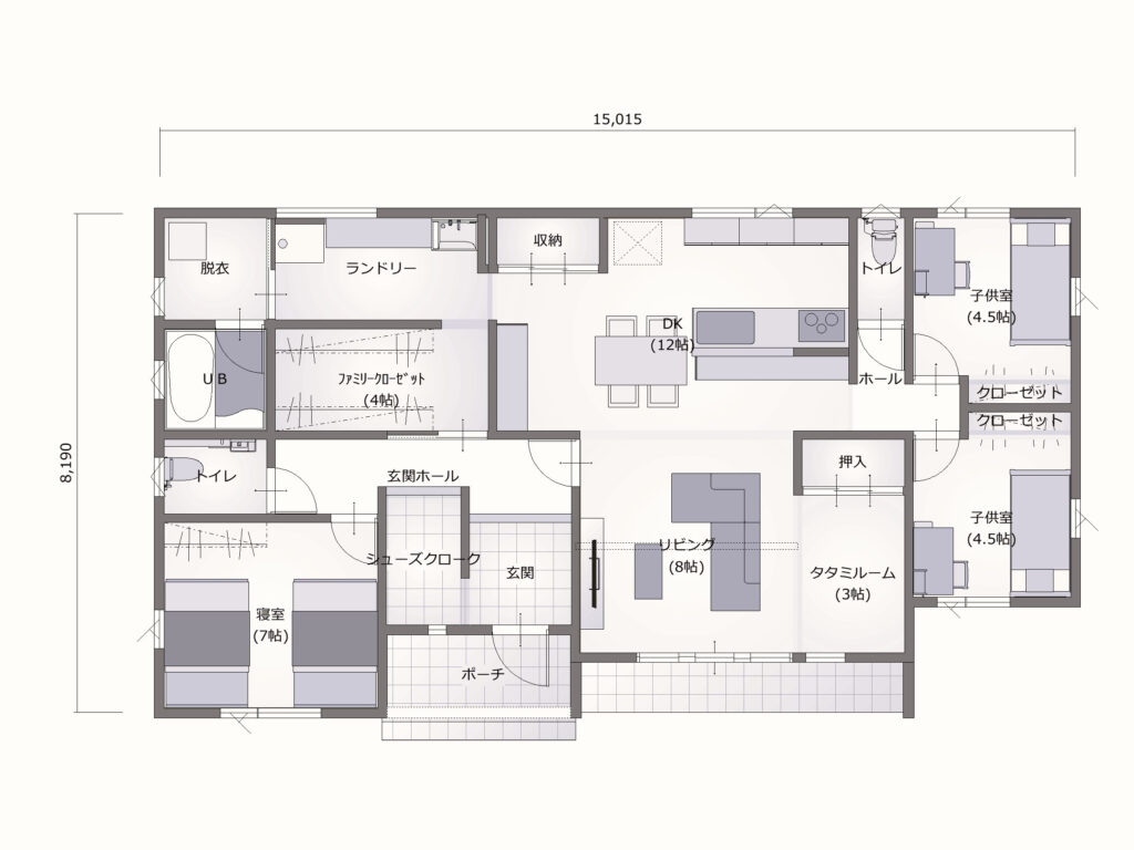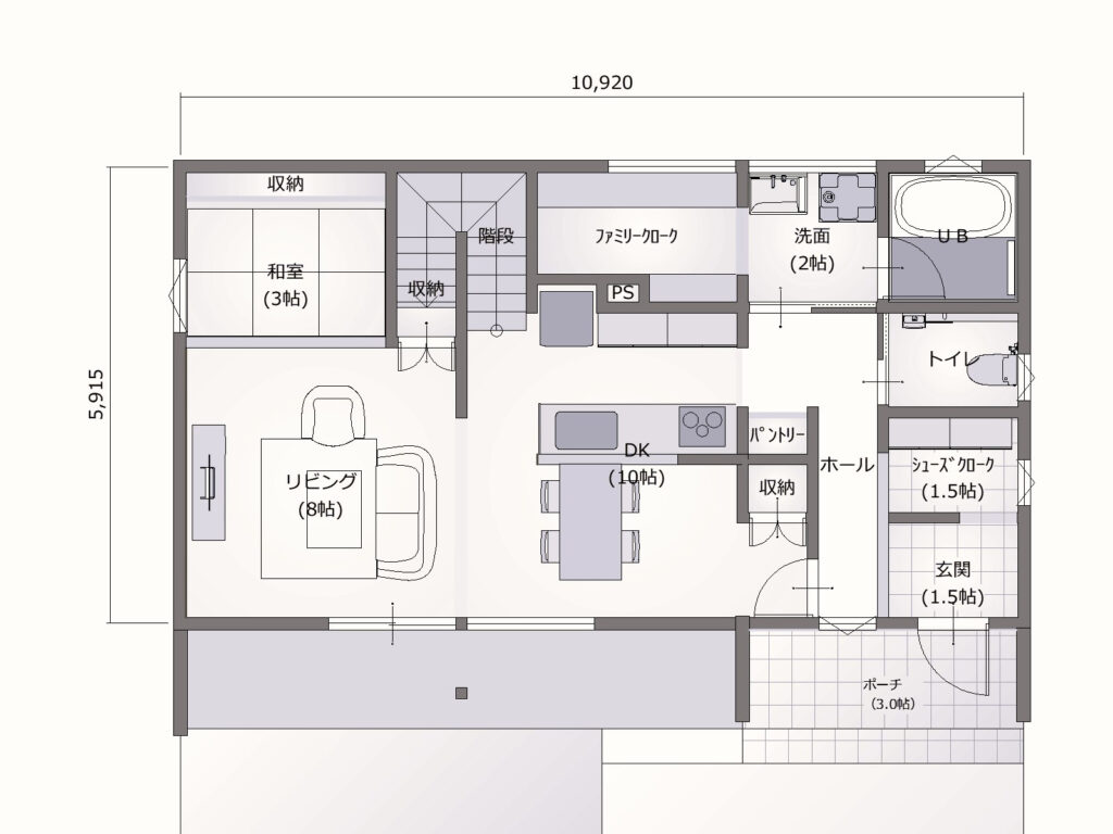家族4人にちょうどいいサイズ感。コンパクトながら収納も充実。