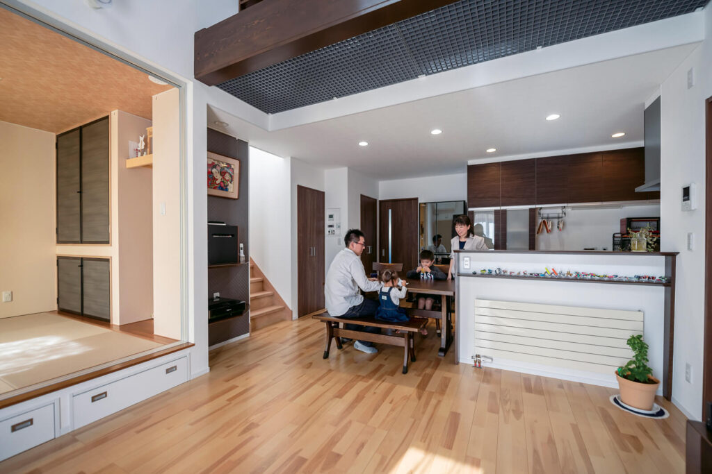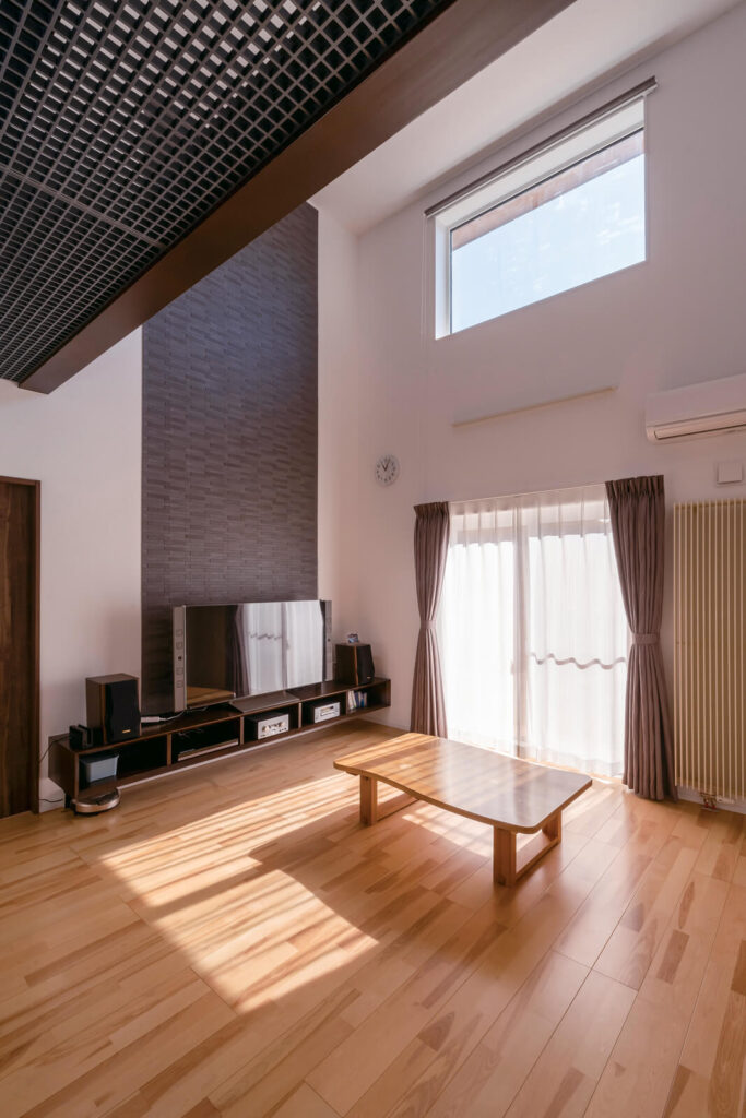 緩やかな勾配天井と南向きのリビングでのどかに過ごせる平屋