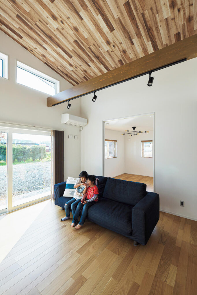 緩やかな勾配天井と南向きのリビングでのどかに過ごせる平屋