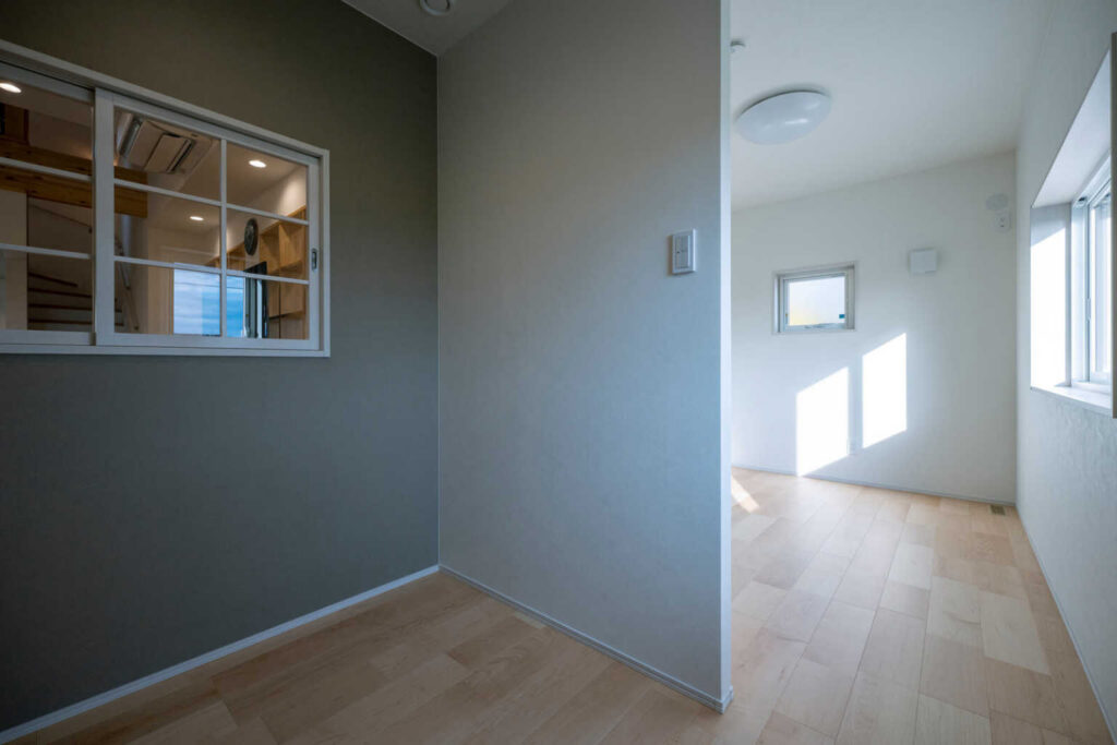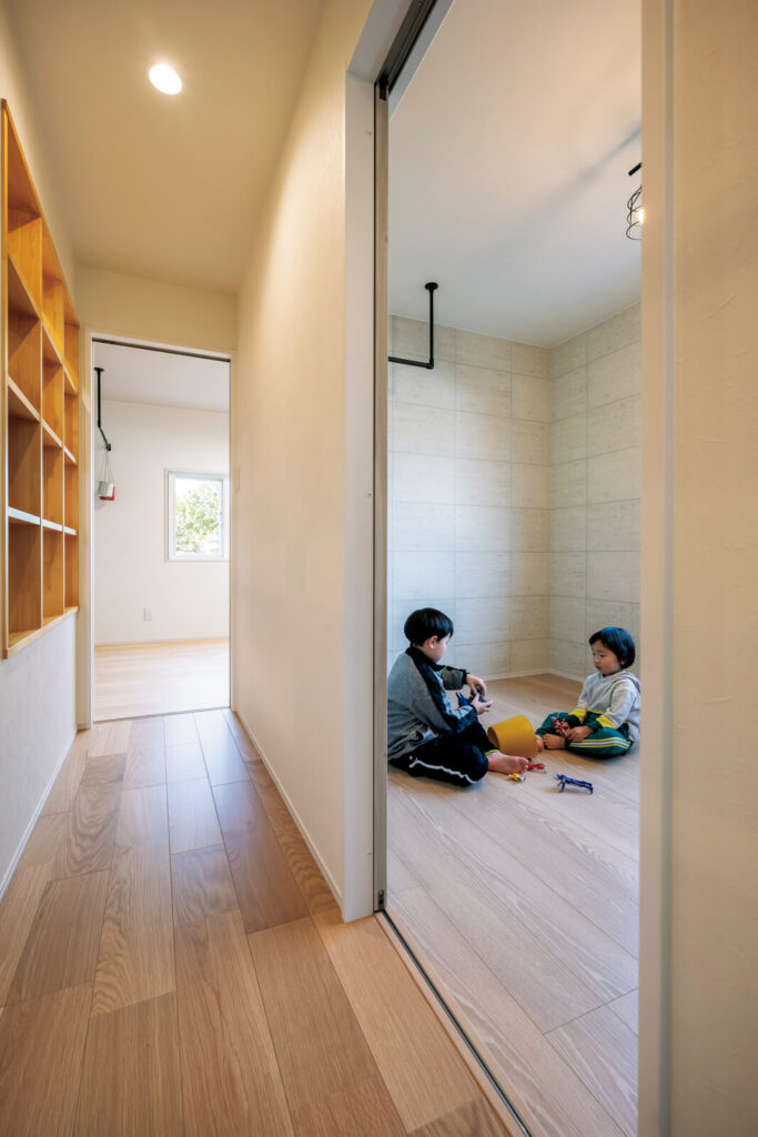 将来、子どもたちが成長した時のことを考慮し、子ども部屋の前にはワンクッションになる廊下をレイアウト