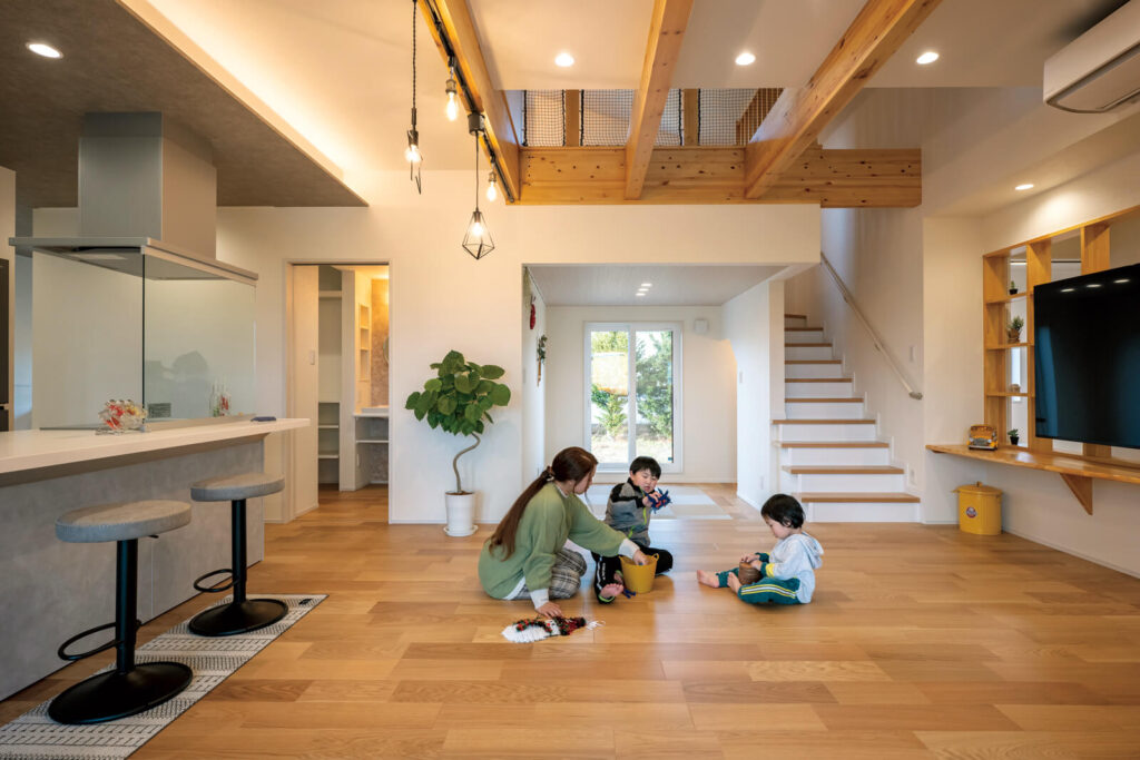 「家中どこにいてもくつろげて、家族の気配が伝わる理想の家ができました。何よりも子どもたちをのびのび育てることができるのが嬉しいですね」と話す娘さんとNさんの笑顔が、満足を物語っていました。