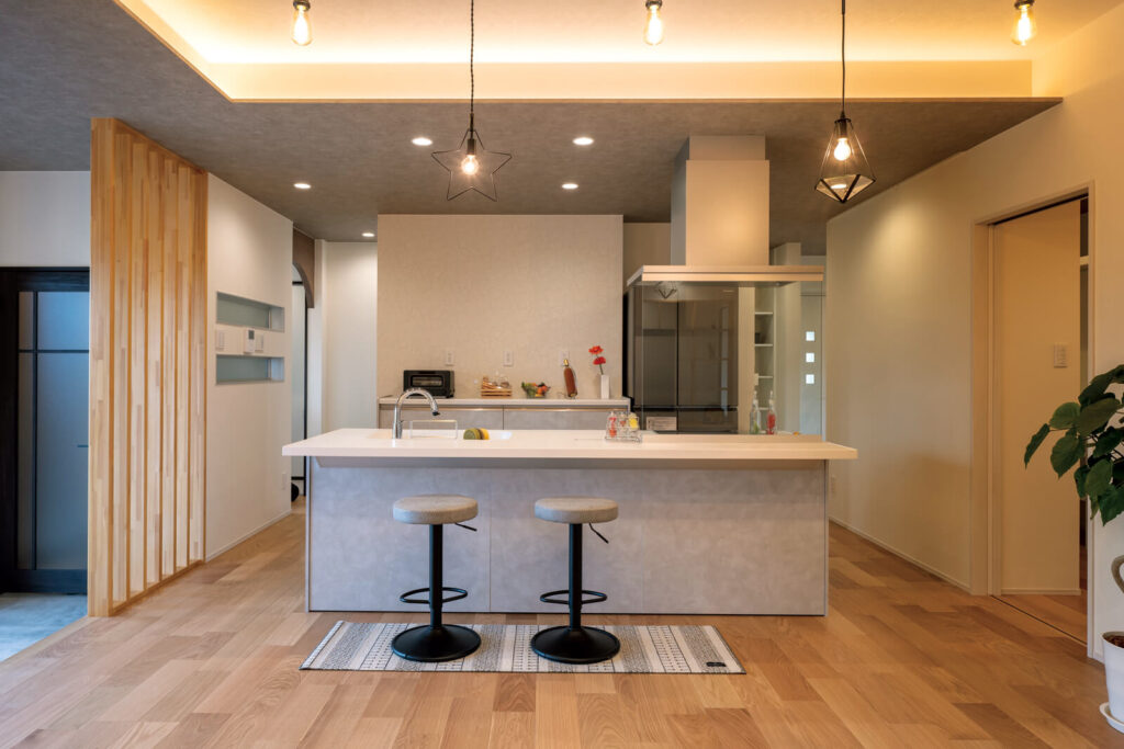 調理中も部屋全体が見渡せるよう、フラットでオープンなアイランドキッチンをチョイス