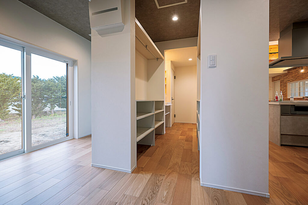 キッチンを中心に回遊動線を導入。家事のしやすさという女性ならではの目線が生きた間取り