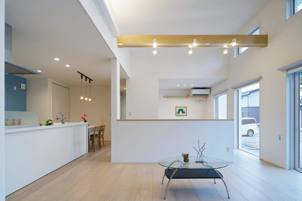 また、サンドイッチ工法の基礎断熱、充填+付加のダブル壁断熱により、高断熱・高気密な空間が実現されているのも住工房iならでは。冬暖かく夏涼しく、省エネルギーで環境にも家計にも優しい住まいとなっています。