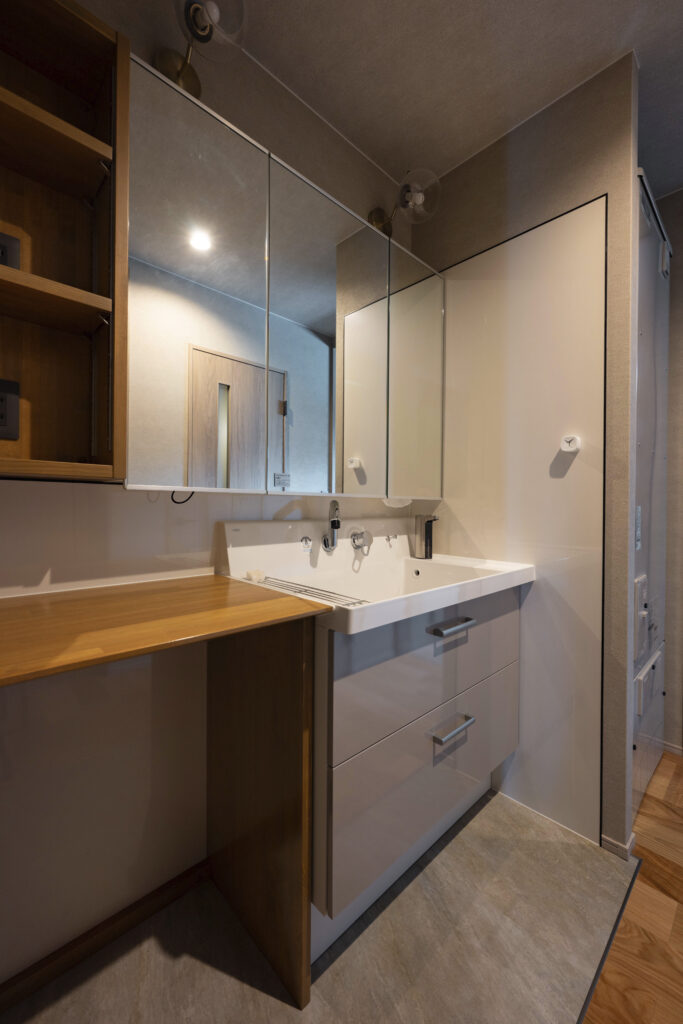 玄関の隣に設けられた独立型の洗面スペース。帰宅後すぐに手が洗えるので衛生的